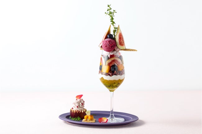 フレッシュないちじくやベリーをふんだんに使用し、ローズとフランボワーズやカシスとライチのアイス、ドライのいちじくとクランベリーのチョコがけクランブル、ベリージャム入りの豆乳クリームで、『ピオニー・フィグ コレクション』が持つ可愛らしさと麗しさを、ピンク色のコントラストで表現。