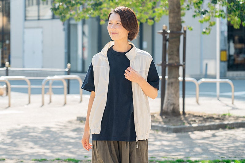 肩部分をドロップショルダーにし、華奢見えと動きやすさの両方を実現。
