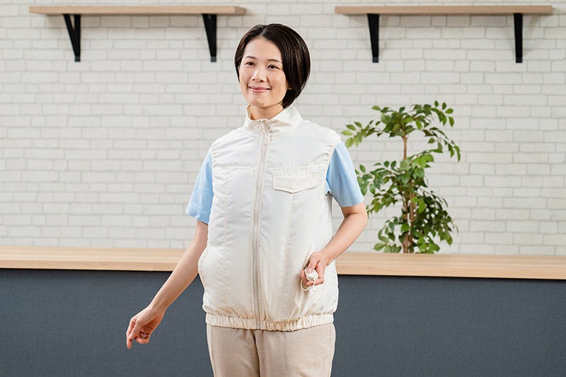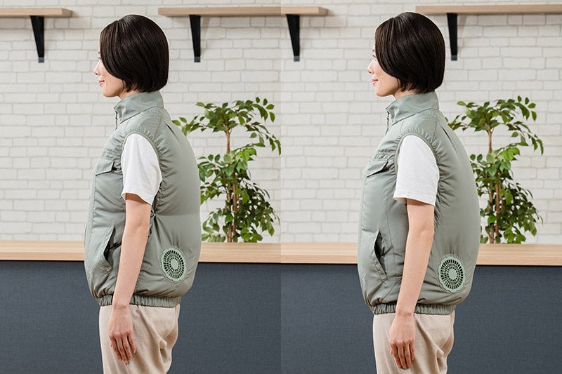 - ふくらみを抑えた「スッキリ見え」クールファンベストで猛暑日を涼しく快適に!
