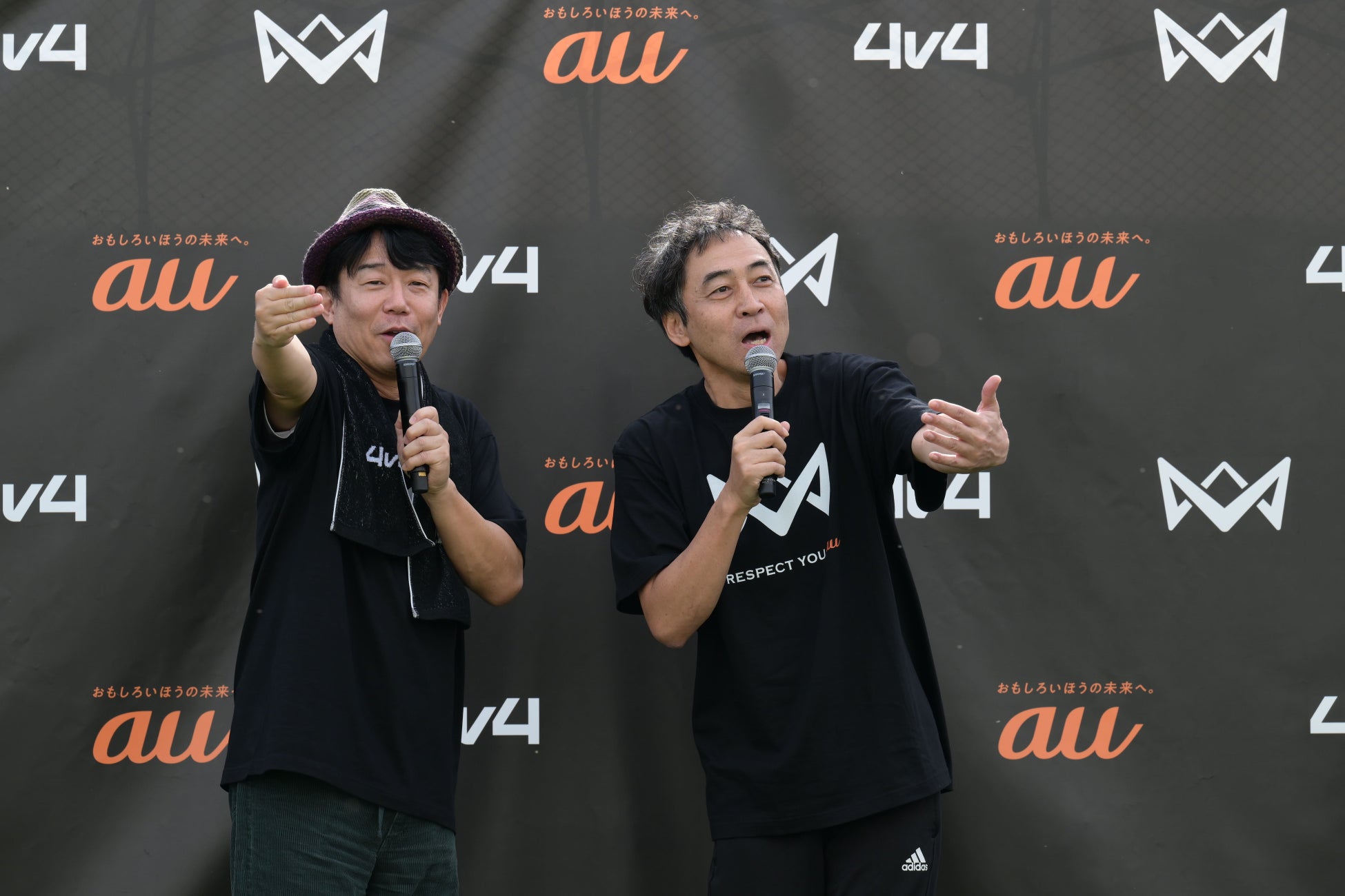 イベントを華やかに盛り上げるべく、オープニングイベントにはお笑い界きってのサッカー通「ペナルティ」さんと、元プロサッカー選手の山瀬功治さんが登場しました。イベントでは、4v4にまつわるクイズや小学生チームとの真剣勝負を行うエキシビジョンマッチを通して、来場者に4v4の魅力を存分に体感いただきました。