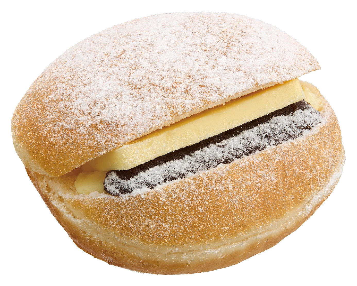 『クリスピー・クリーム・プレミアム 名古屋 珈琲あんバター』 【販売期間】 2024年6月1日(土)~7月中旬予定 【販売価格】 368円 喫茶店のモーニングをドーナツに! ふわっとした食感のドーナツに、香ばしい珈琲あんとバターをサンド。 ミルキーなミルククリームを合わせました。 |