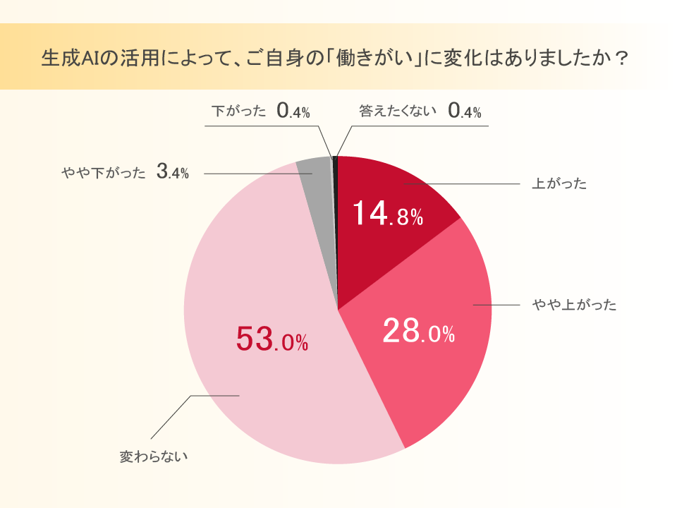 生成AIの活用で、4割以上の人が働きがいが「上がった」と回答。