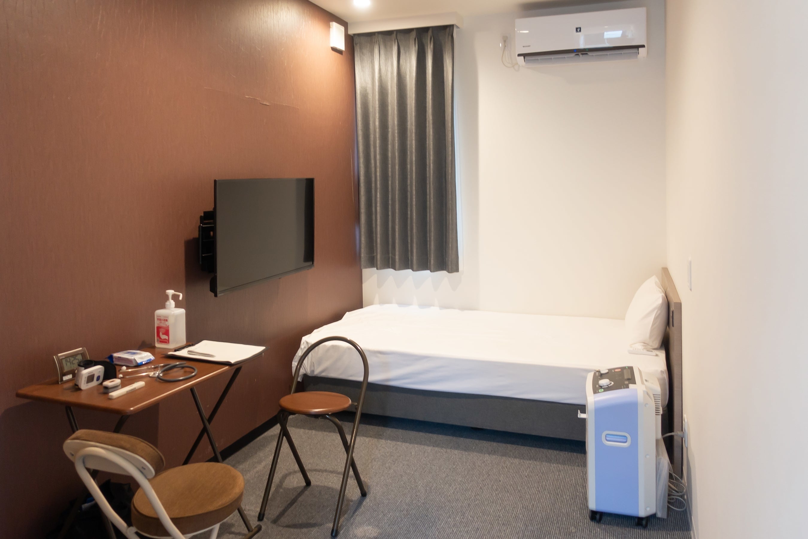 ・室内:ベッド、風呂、トイレ、テレビ、冷蔵庫、電子レンジなど備え付け