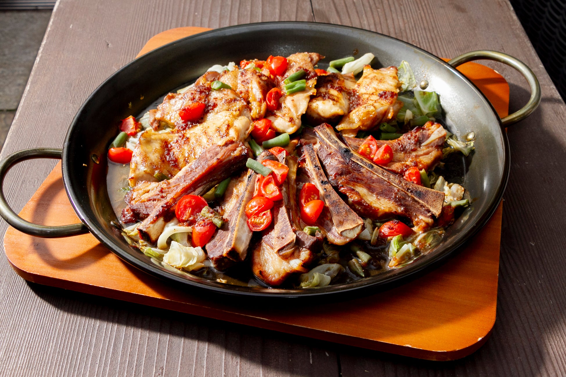 メインディッシュのお勧めは、具沢山でおこげが最後のお楽しみ「シーフードパエリア」、遠慮なく手でガシッと噛みしめたいジューシーな「骨付きスペアリブとローストチキン」は食べ応えが抜群、熟練のシェフがジャストの火入れ「国産牛タリアータ」はレストランシェフならではのハイクオリティの一皿。その他「ガーリックトースト」や「グリルソーセージ」等の名脇役で抜かりなく。