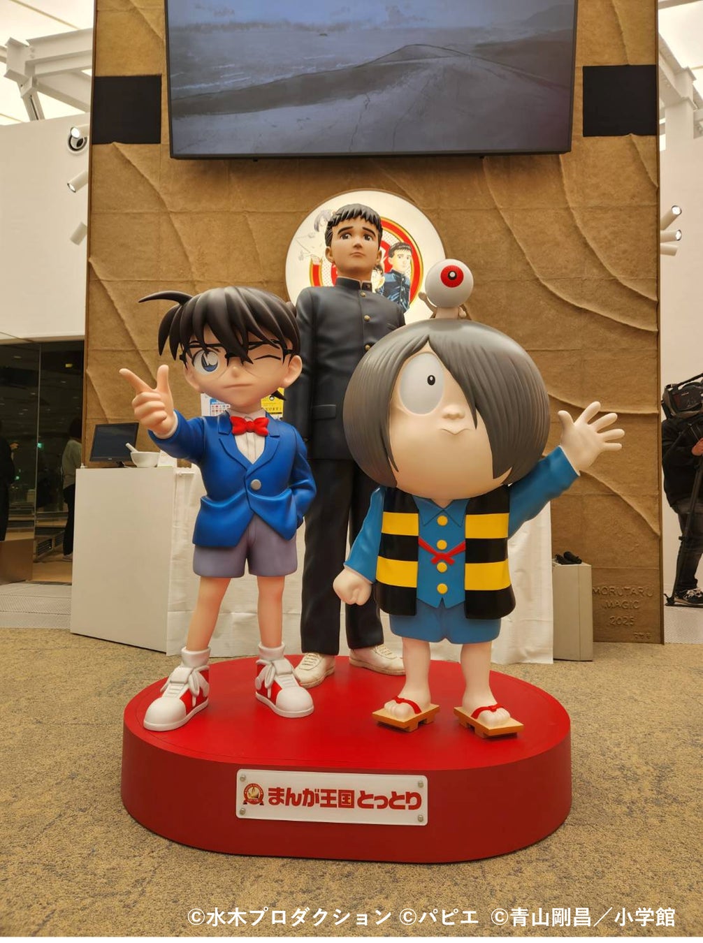 まんが王国とっとりコーナーでは、鳥取県出身のまんが家、水木しげる氏、谷口ジロー氏、青山剛昌氏の紹介や、先生ゆかりの観光施設をみることができます。また海外で出版された作品やまんが王国とっとりならではの貴重なグッズも展示しています。