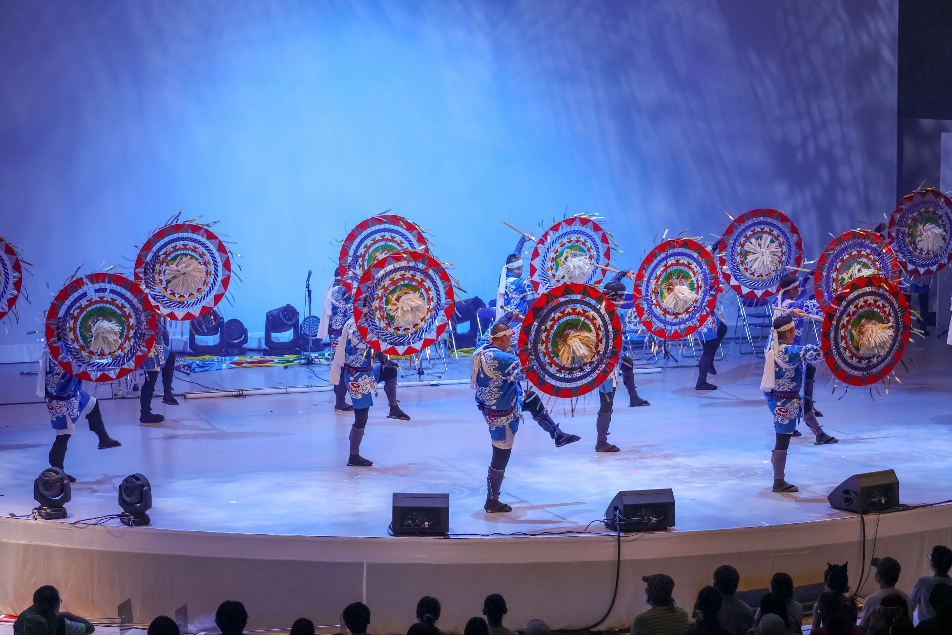 名探偵コナンのキャラクター「怪盗キッド」の衣装に身を包んだ平井知事が登場し、「今日は鳥取県づくしの盛り沢山な一日です。いろんな魅力がある鳥取県を最後まで楽しんでいただきたい」と挨拶しステージが開幕。様々な郷土芸能の実演からスタートし、会場は一気に鳥取県の空気に包まれます。一組目は「国府町因幡の傘踊り」。長柄の大傘を使い、傘を回転しながら剣舞のように舞う力強いパフォーマンスを行いました。続いて、倉吉市高城地区にて大阪城築城の頃に歌われた労働歌「高城牛追掛節」が披露されました。ステージには牛が登場し、当時の田園風景が演出されました。最後に米子市淀江町よりお座敷芸能として明治から大正にかけて発展した「淀江さんこ節」を披露。子供たちも登場し、おめでたい「銭太鼓」や「壁塗りさんこ」、華やかな「傘踊り」などさまざまな演出で軽快に演舞しました。