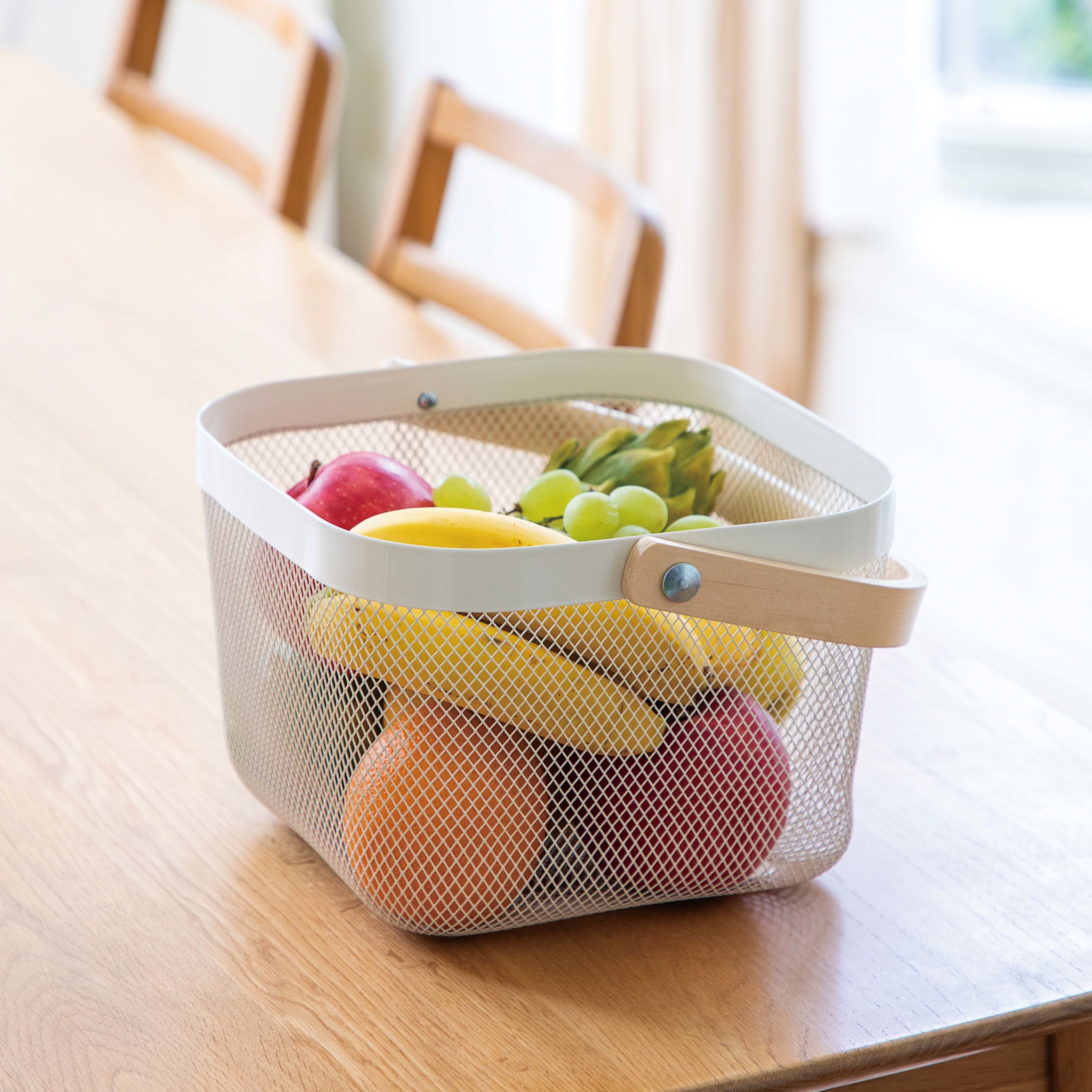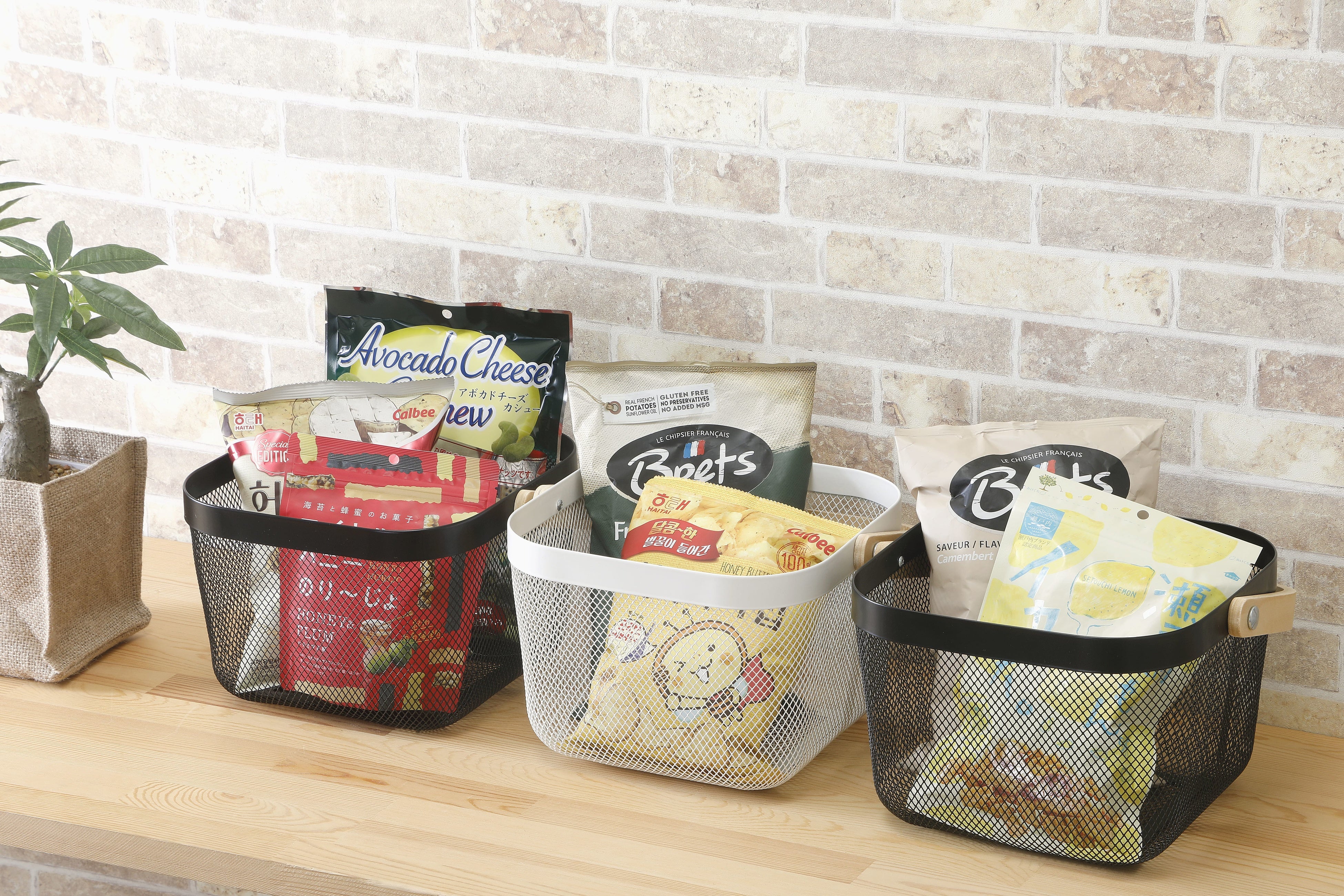メッシュ仕様で中身が見えるバスケット。シンプルなデザインで、様々なインテリアに馴染みます。