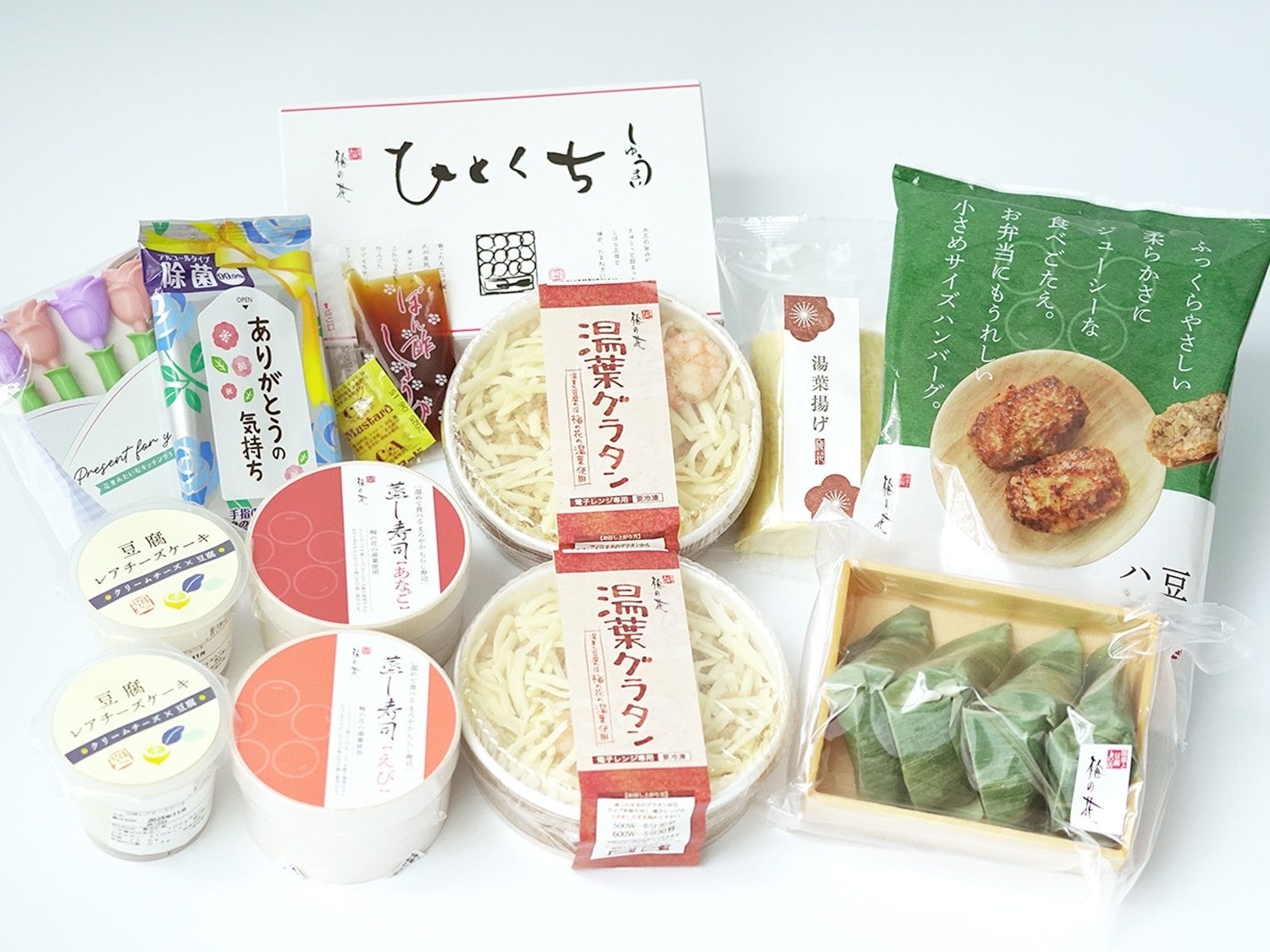 株式会社 梅の花(本社:福岡県久留米市、代表取締役:鬼塚崇裕)が運営する、公式通販サイト「通販本舗 梅あそび」では5月11日(日)の母の日に向けた、期間限定「母の日セット」商品を販売いたします。梅の花こだわりの豆腐や湯葉を使った上品で華やかな料理は、健康を気遣うお母さんにも嬉しい、体に優しく繊細な味わいが広がります。また母の日セット商品限定で、便利で使いやすいノベルティも同封してお届けいたします。