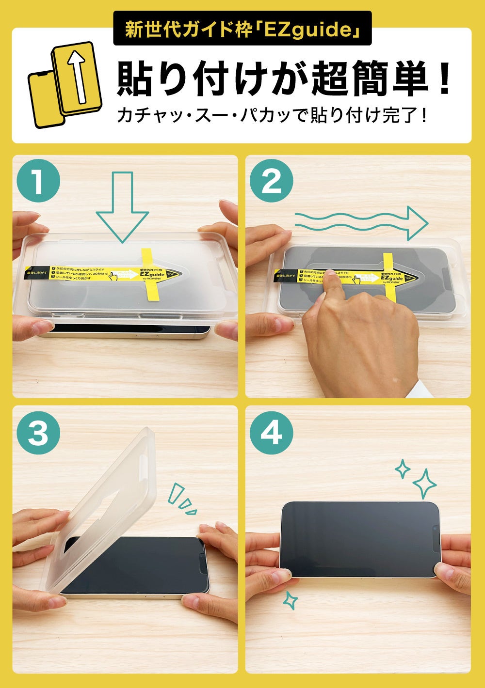 ガイド枠「EZguide」で貼りやすいモンスターフィルム!アイフォン15 / プラス / プロ / プロマックス 用も発売開始!黒くなりすぎない「のぞき見防止」フィルターをお求めの方におすすめ!