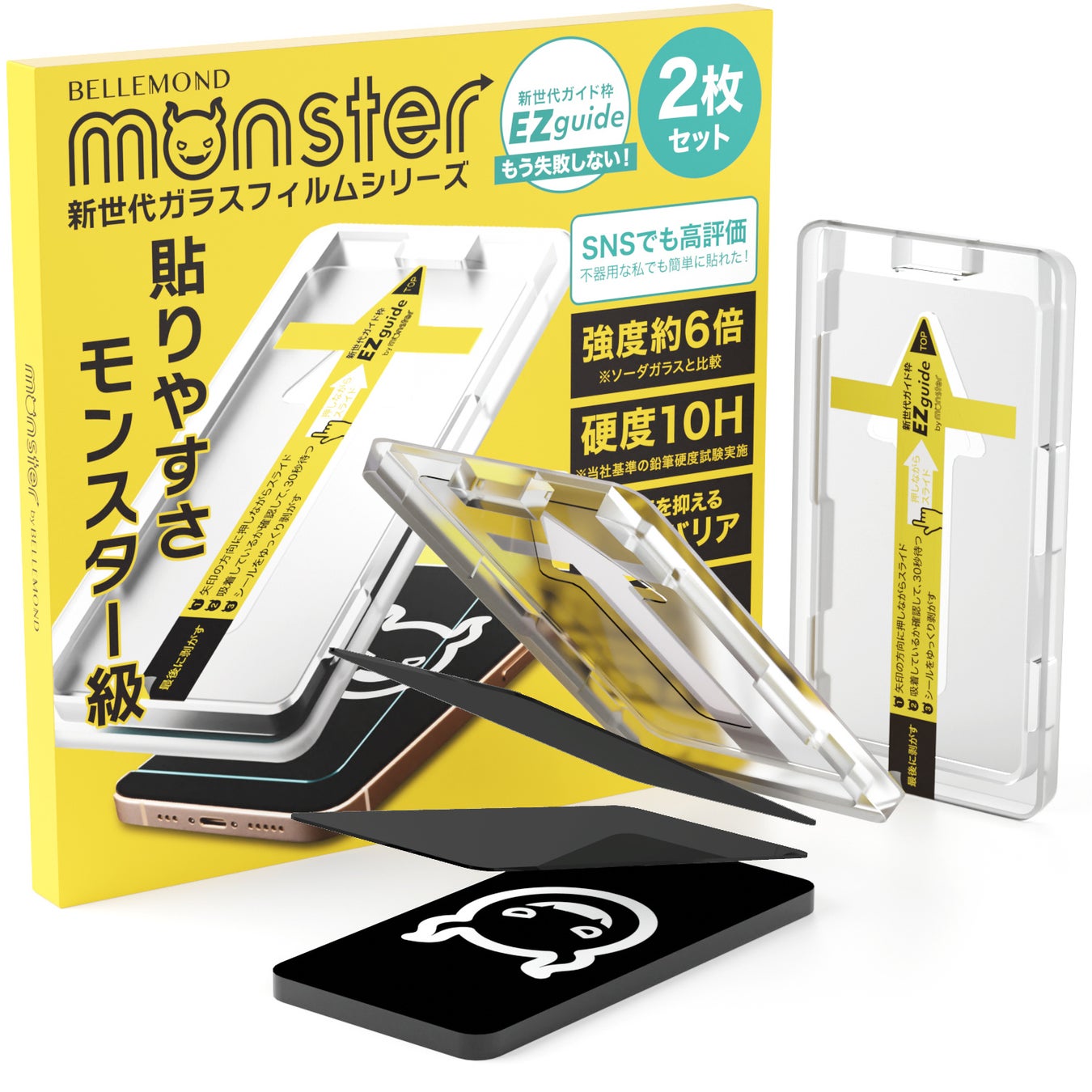 Fun Standard株式会社(本社:福岡県⼤野城市)が展開するモバイルアクセサリーブランド「BELLEMOND(ベルモンド)」より、セール情報のお知らせです。2023年9月13日に発表、予約開始日9月15日、発売日9月22日のApple社iPhone15シリーズ用の液晶画面保護フィルム「MonsterFilm(モンスターフィルム)」を、発売記念特別価格にて発売します。モンスターは次世代ガイド枠「EZguide(イージーガイド)」を採用。ガイド枠をスマホにかぶせるだけで位置合わせ完了!従来のガイド枠の難点であったフィルムセッティングの必要がなく、「誰でも簡単に貼れる」を実現したフィルムです。強化ガラスの品質も高く、一般的なソーダライムガラスと比べ強度約6倍のハイアルミニウムガラスで、表面硬度は10Hとなっております。全て2枚セット&ガイド枠付きのiPhone15シリーズ用モンスターフィルム、発売記念特価はなんと「698~898円」となっております!左右からの覗き見を防止し、見にくくなりすぎない「覗き見防止」タイプは898円にて発売!ガイド付2枚セットでこの価格、お見逃しなく!