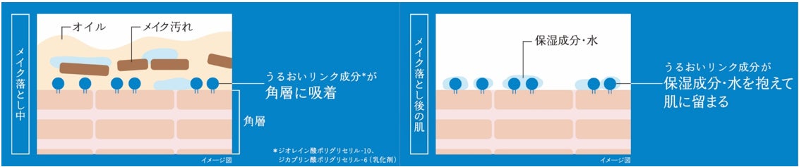 「うるおいリンクアップテクノロジー」により、厳選配合した「うるおいリンク成分(※4)」が肌に吸着し、保湿成分や水分を肌につなぎとめる
