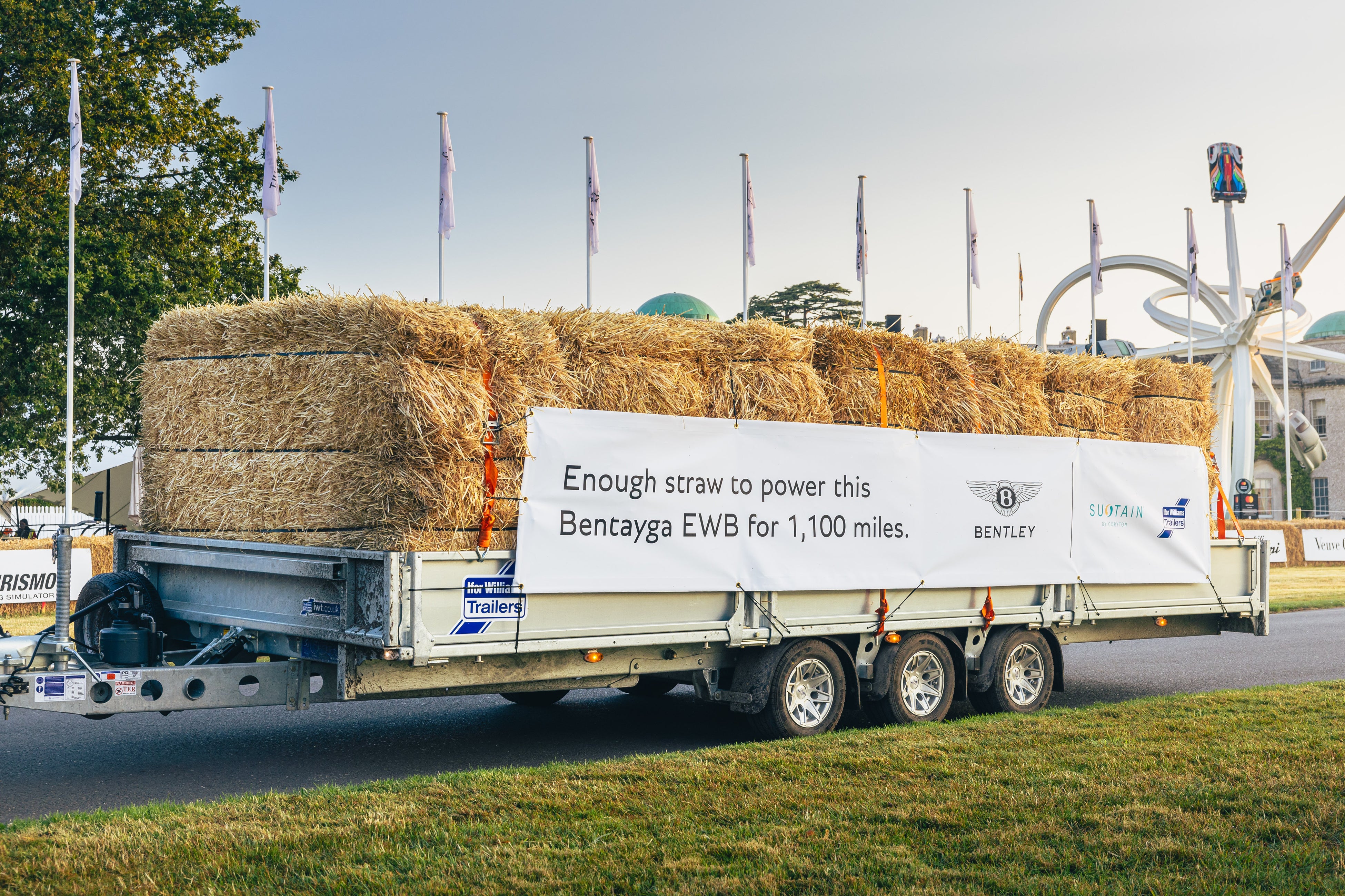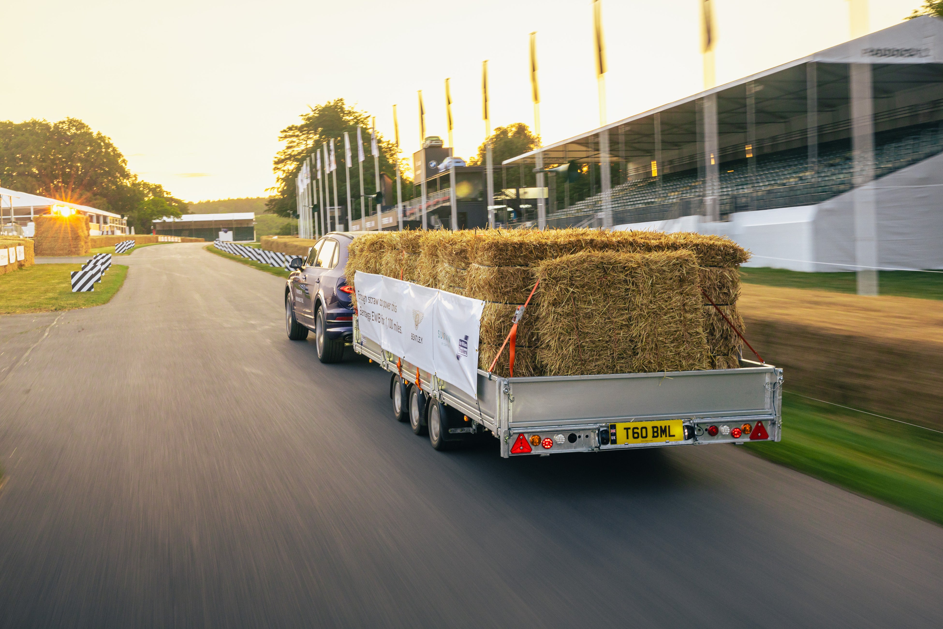 ベントレーの最新フラッグシップモデルであるベンテイガEWBは、ヒルクライムをわずか1分21秒で完走し、それだけでも十分印象的ではありますが、今回は特別に用意された、2.5 トンの藁を積載したアイフォー・ウィリアムズのトレーラーを牽引していたという事実によってさらに驚きを与えました。