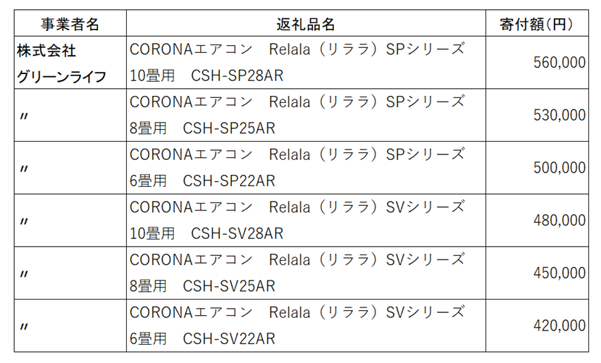 新潟県三条市(市長:滝沢 亮)は、コロナ製エアコンの6機種品目を新規返礼品として採用し、寄付受付を開始しました。