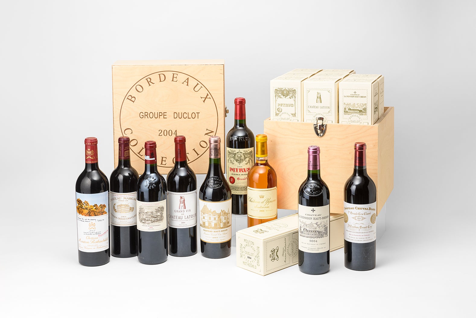 フランス・ボルドーのトップワイン商であるデュクロ社が厳選した、ボルドー地方の名門シャトーのワイン9本のオリジナルセットです。シャトー・ムートン・ロートシルト、シャトー・マルゴー、シャトー・ラフィット・ロートシルト、シャトー・ラトゥール、シャトー・オー・ブリオン、シャトー・ディケム、シャトー・ラ・ミッション・オー・ブリオン、シャトー・シュヴァル・ブラン、ペトリュスの9本が一堂に揃っています。