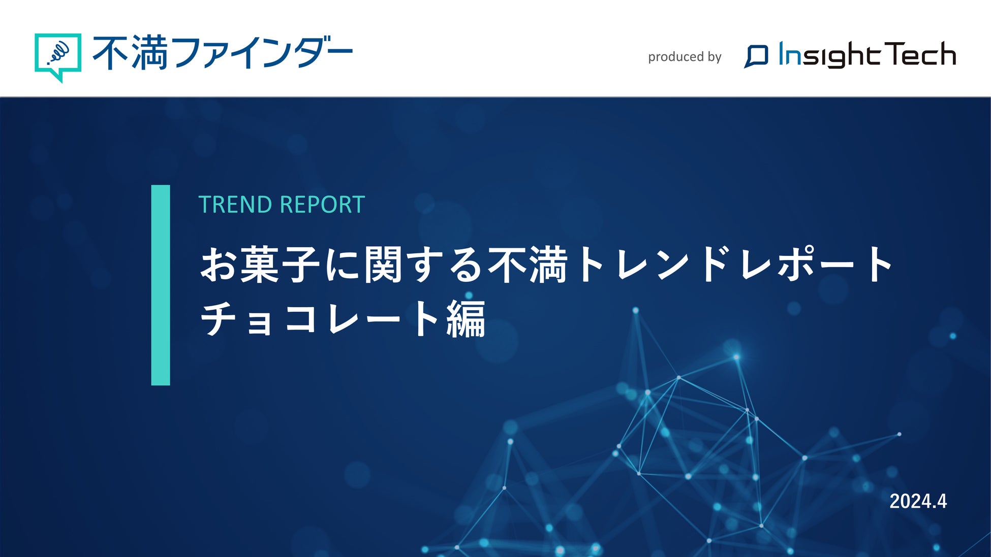 株式会社 Insight Tech(東京都新宿区、代表:伊藤友博、以下 Insight Tech)は、同社が運営する『不満買取センター』に寄せられたチョコレートに関する不満を『不満ファインダー』を用いて解析・考察したレポートを公開しました。