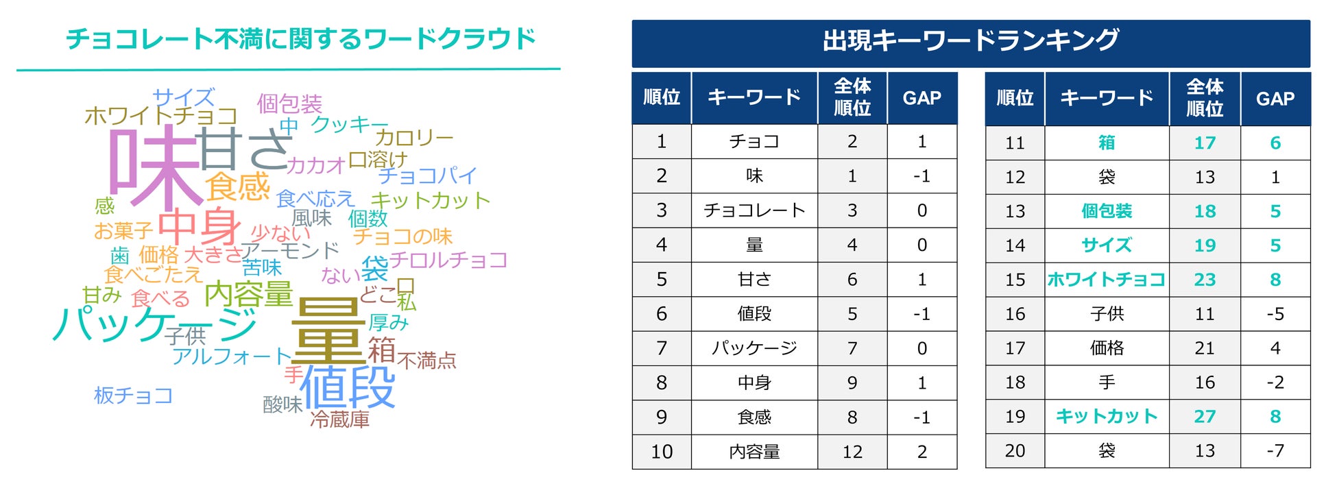 TOP20圏外を含め、チョコレートに対する不満について特徴的なキーワードとしてピックアップしたものは以下のとおり。
