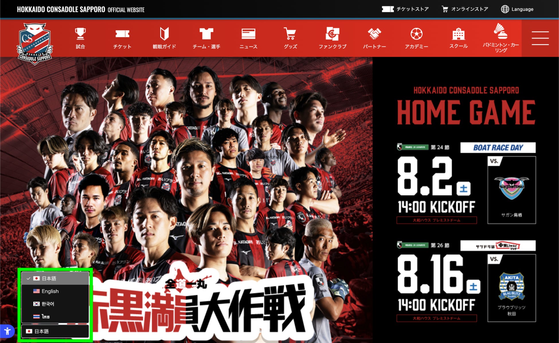 北海道コンサドーレ札幌 公式サイト:https://www.consadole-sapporo.jp/