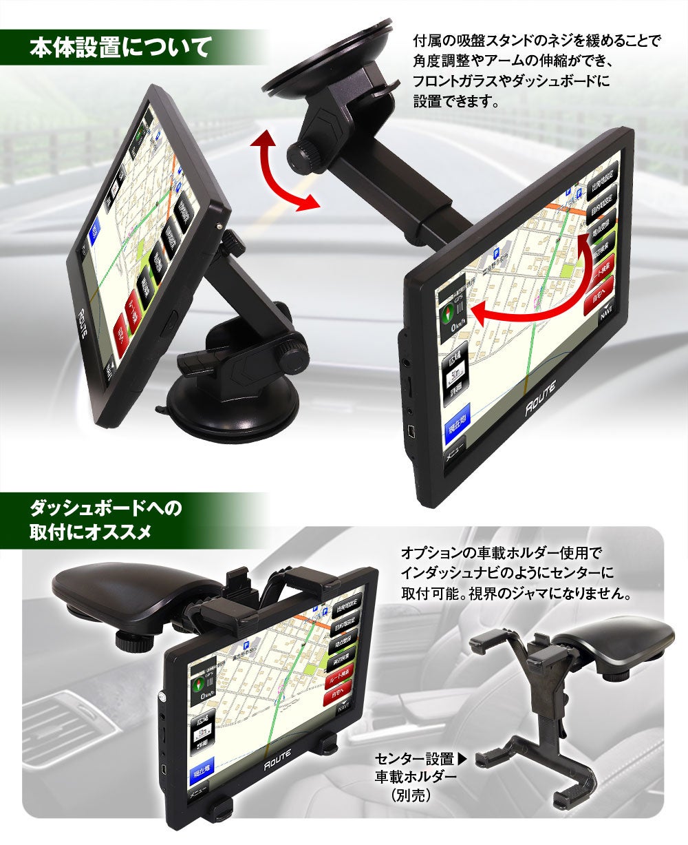 オプションの車載ホルダーを使用するとインダッシュナビのように取り付けが可能。
