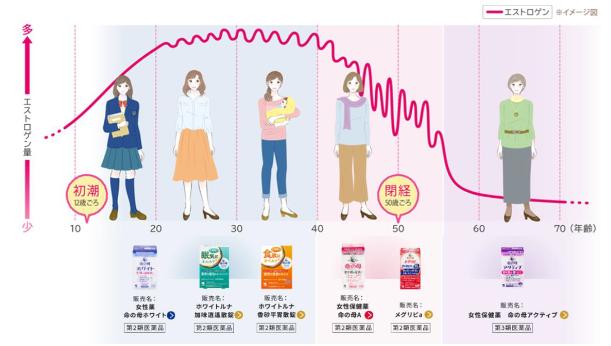 「命の母」ブランドは、女性ホルモンの乱れに左右されず、自分らしく過ごせることを願って、ライフステージごとに起こり得る症状を改善する製品を提供しています。