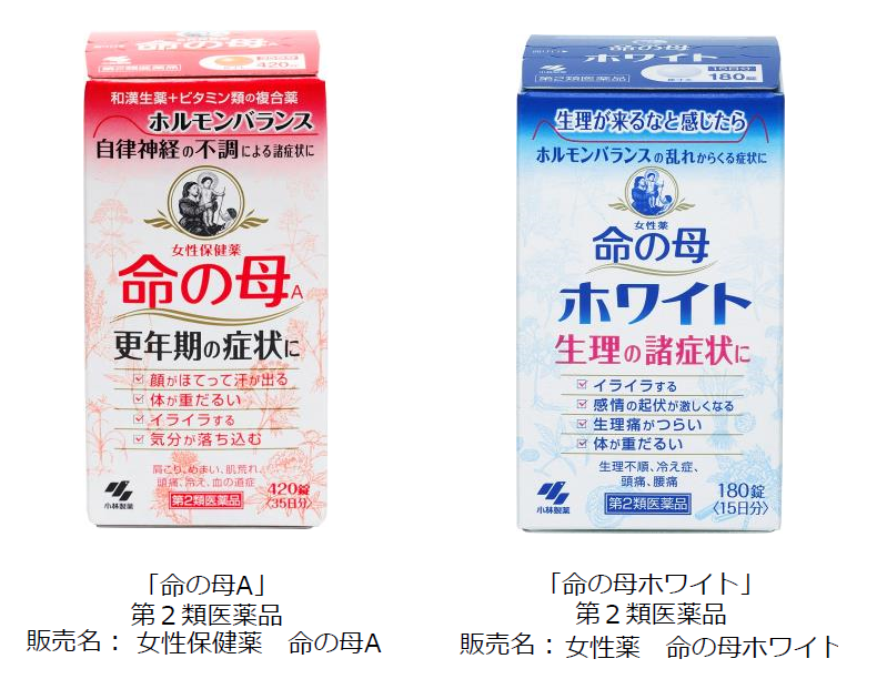 ◇平成:小林製薬株式会社(本社:大阪市、社長:小林 章浩)は、2005年1月より、それまでの販売元であった笹岡薬品株式会社から「命の母A」「命の母ホワイト」の独占販売権を取得。より多くの困っている女性に手にとっていただけるよう、分かりやすい訴求を入れたデザインにリニューアルし、同年6月よりリニューアル販売をしております。