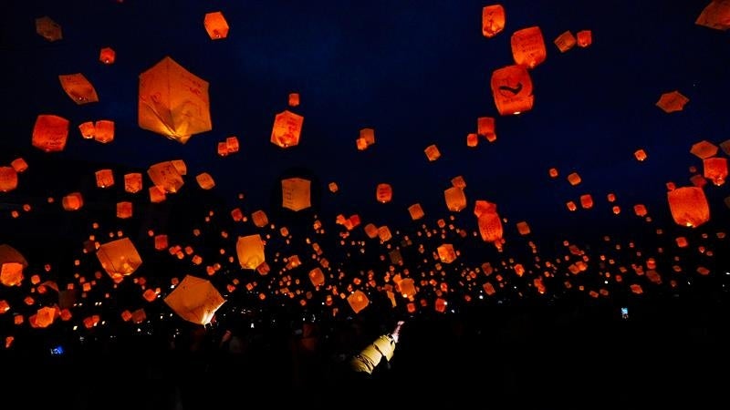 約250基の桜色のランタンにメッセージを書き込み、夜空へ一斉に打ち上げます。