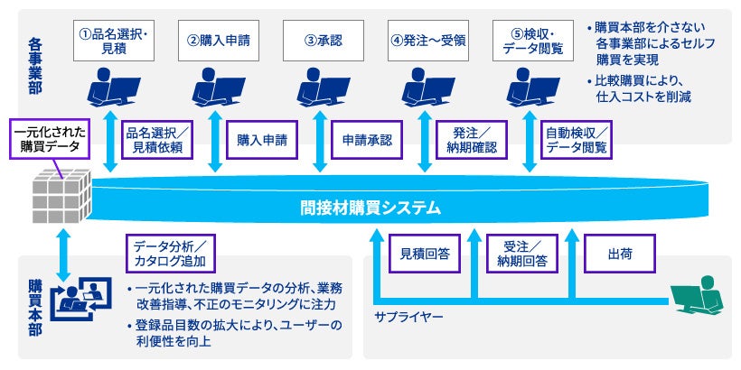DNPでは、日々の事業活動で行う購買業務の効率化・高度化に向けた取組みを推進しています。購買業務のなかでも副資材・消耗品などに代表される間接材の購買業務は、依頼部門の購買依頼業務と購買部門の発注手続の負担が大きく、プロセスの効率化・高度化に向け、株式会社アルファパーチェス(本社:東京都港区、代表取締役 社長 兼 CEO:多田 雅之)とともに、新たなシステム導入を模索していました。