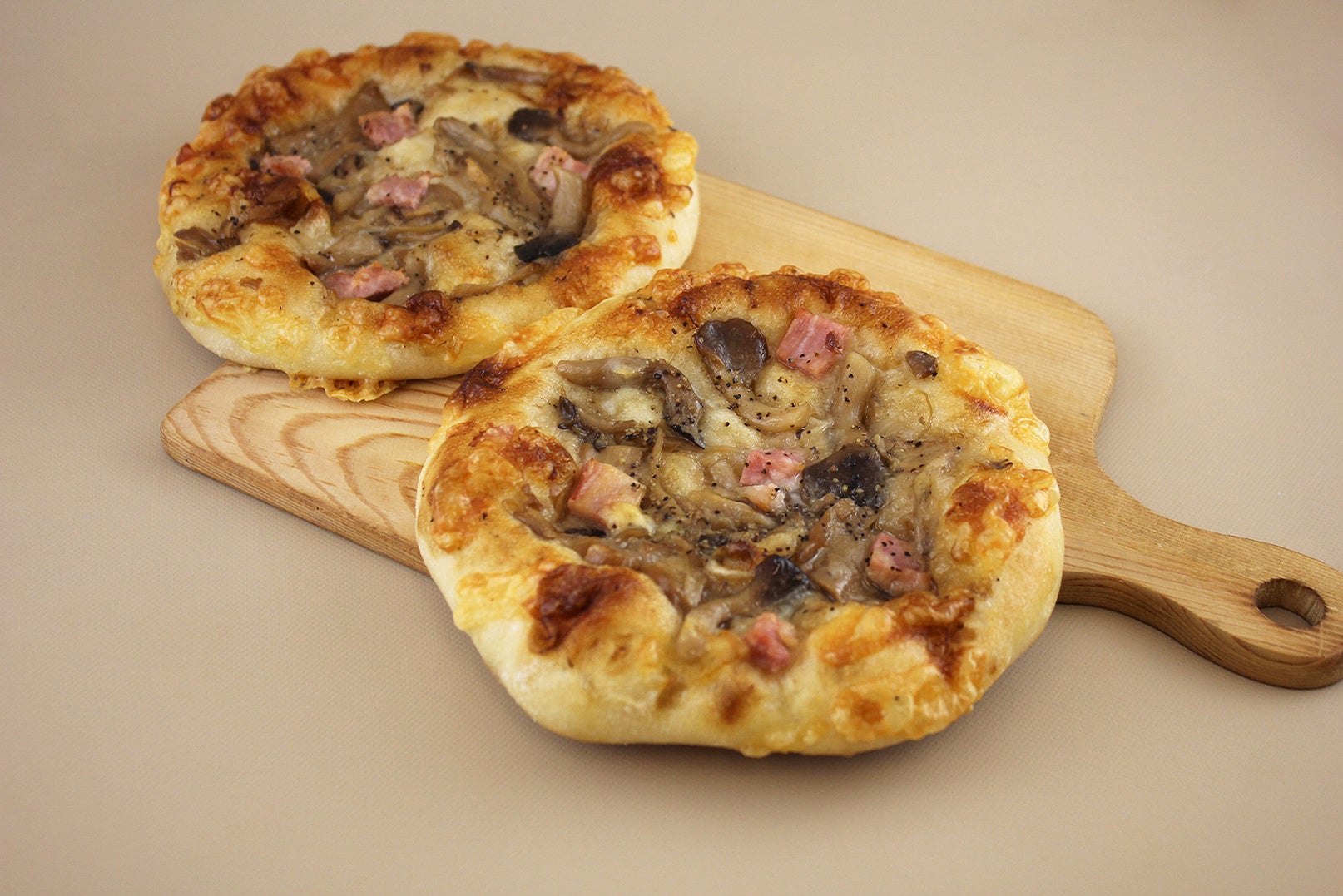 3種類のきのこと、ベーコンをトッピングしたもっちり噛み応えのあるピザです。きのこの食感とベーコンの塩気がアクセントになり、ガッツリ食べたい時におすすめの一品です。