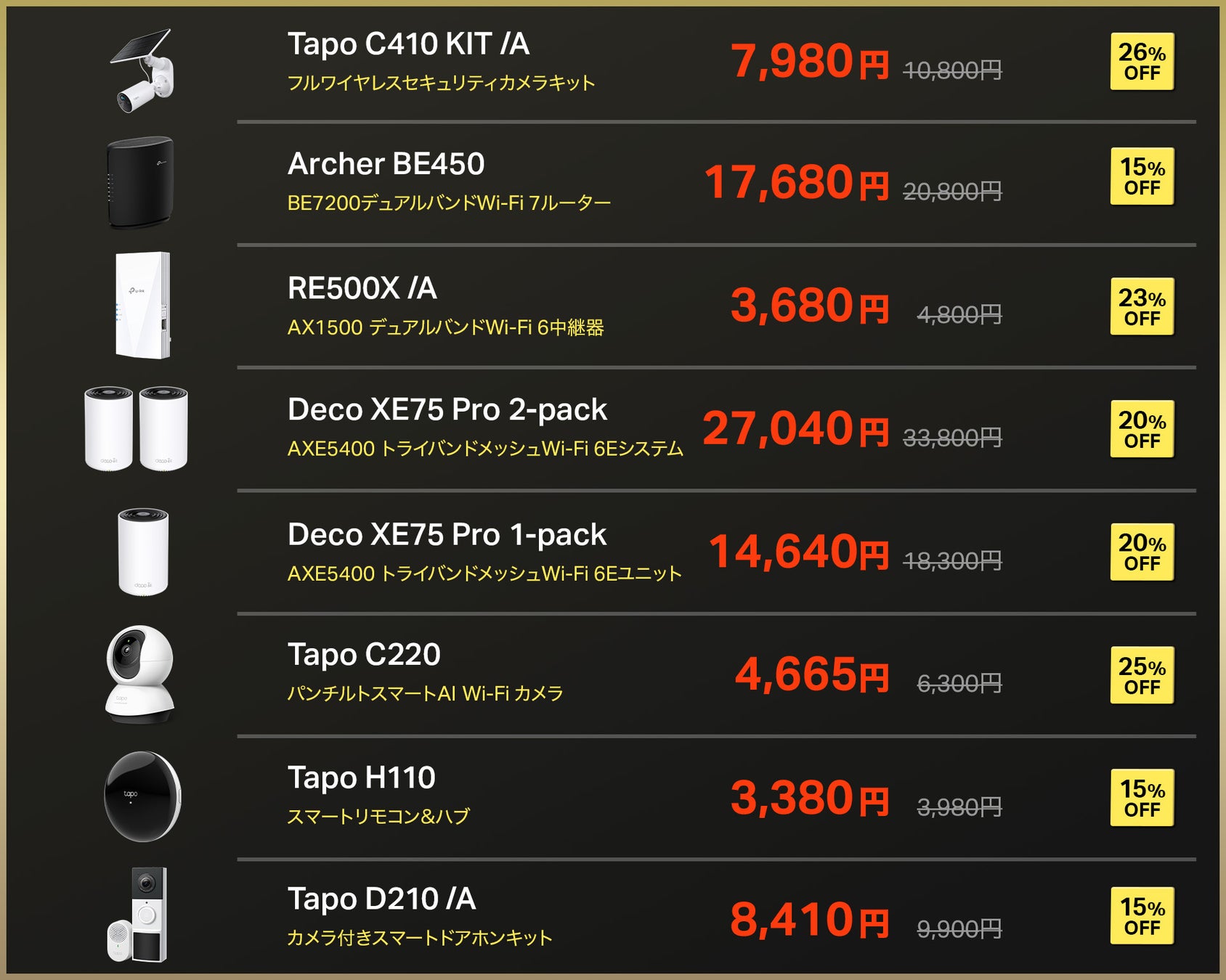 ※掲載商品はセール対象品の一部です。全てのセール品を確認するにはAmazon.co.jpのTP-Linkページをご覧ください。