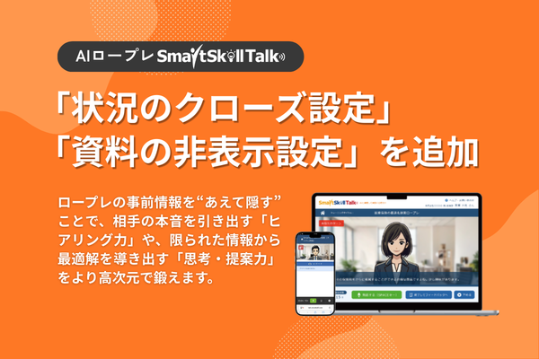 AIだけが知る「相手の本音」。AIロープレ「SmartSkill Talk」、あえて情報を隠すことで商談やマネジメントの対話力を鍛える新機能をリリース