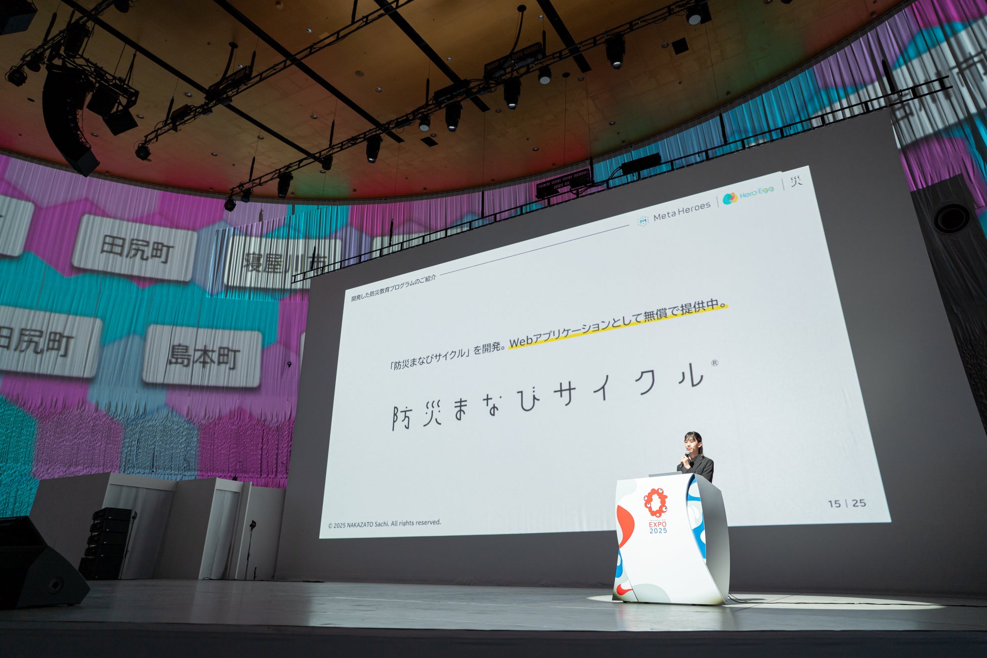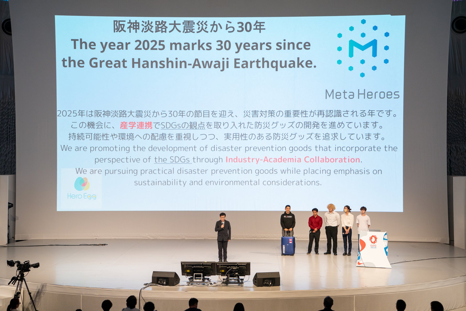 株式会社Meta Heroes(大阪府大阪市、代表取締役:松石和俊)は、2025年5月28日に開催された大阪・関西万博の公式プログラム「防災万博」において、当社が運営するDX教育スペース「Hero Egg」が主催するプレゼンテーションイベント「中高大学生による防災プレゼンピッチ」を開催しました。