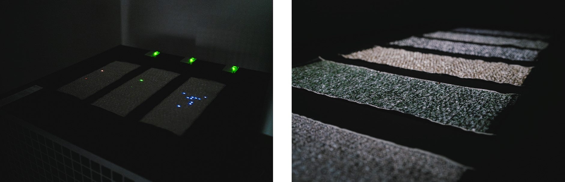 「WP007 <Pixels>」:ドットマトリックス状に発光する織物(*)