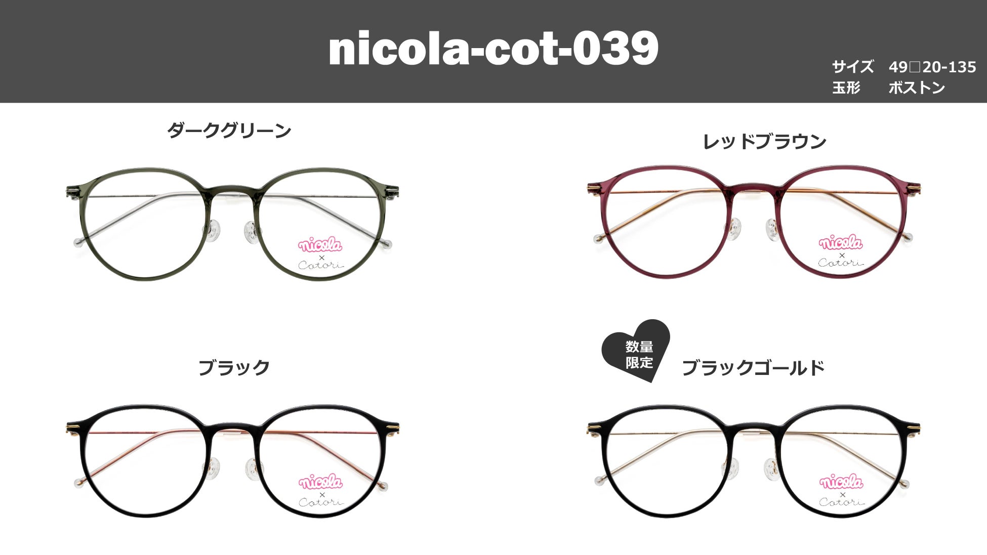 ニコラ専属モデルがカラーを選んだフレームが数量限定で登場「nicola」×「Cotori」コラボメガネ
