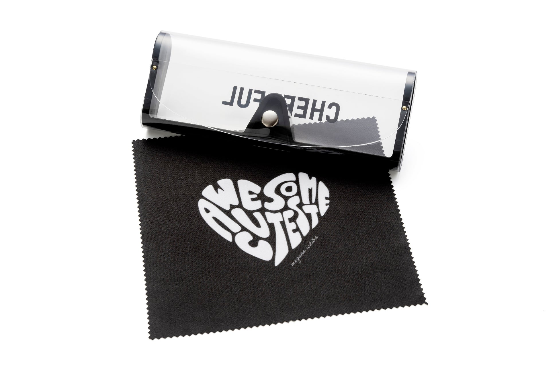 今回のコラボメガネは、ニコラ専属モデル(以下、ニコ㋲)に、かわいい大人メガネとして人気の「Cotori」のフレームデザインの中から、お気に入りの推しフレームを選んでいただき、10代の女の子向けにフレームサイズを小さく作り直しました。フレームカラーは、ニコ㋲が厳選した大人クラシックを楽しめる数量限定のカラーに、ダークグリーン・レッドブラウン・ブラックの3色を加えた4色展開。細身のフレームにカラーでアクセントを加え、普段のファッションにも制服にもおすすめのデザインです。付属のメガネケース&メガネ拭きは、Y2Kをイメージしたモノトーンカラーでカッコかわいく仕上げました。