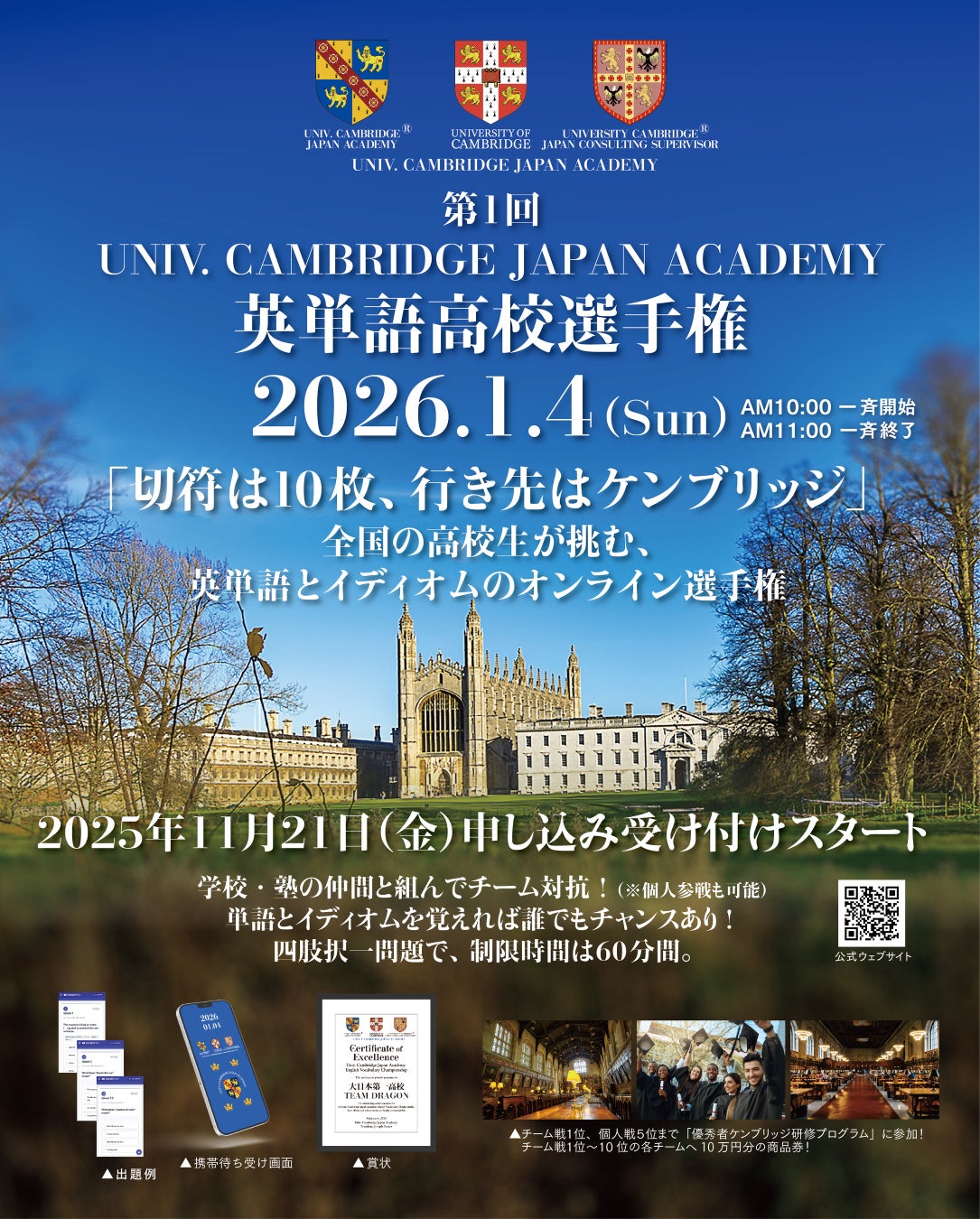 第1回「UNIV. CAMBRIDGE JAPAN ACADEMY 英単語高校選手権」申し込み受け付け開始!