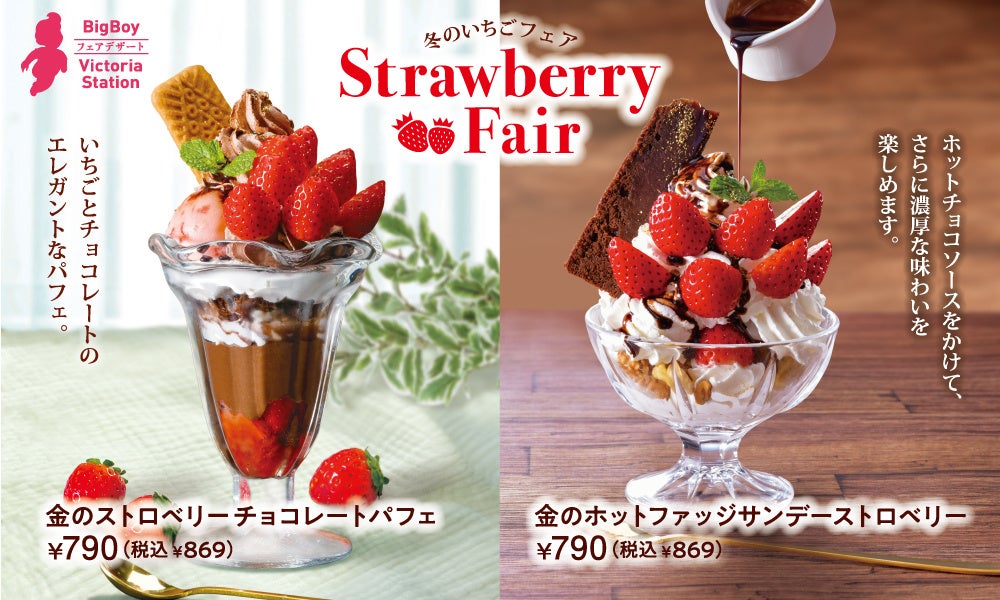 ぜひこの機会に、お近くの「ビッグボーイ」「ヴィクトリアステーション」で、「冬のいちごフェア」をお楽しみください。