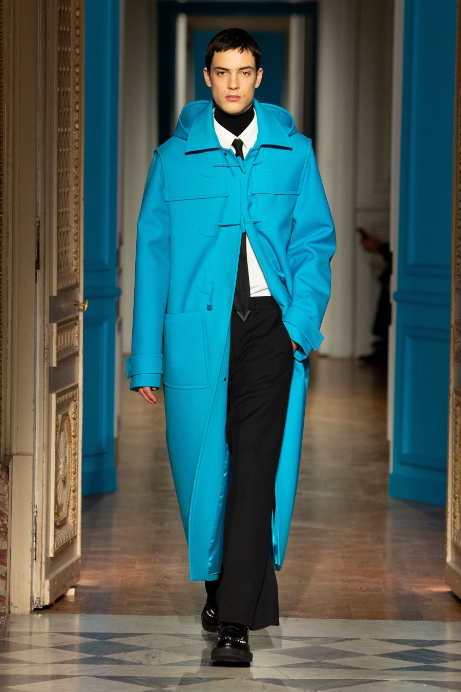 コンテンポラリーなマスキュリニティの絶え間ない反映。ピエールパオロ・ピッチョーリによるヴァレンティノの2024-25年秋冬メンズコレクション ‘ル シエル20.24’ は、アイデアと理想を伝えるコミュニケーションツールとして純粋な色を探ります。社会的な慣習から、そして周囲の期待から解き放たれた色。マスキュリニティを表す色ととらえられているブルーという言語が再構成され、再評価され、再考されます。