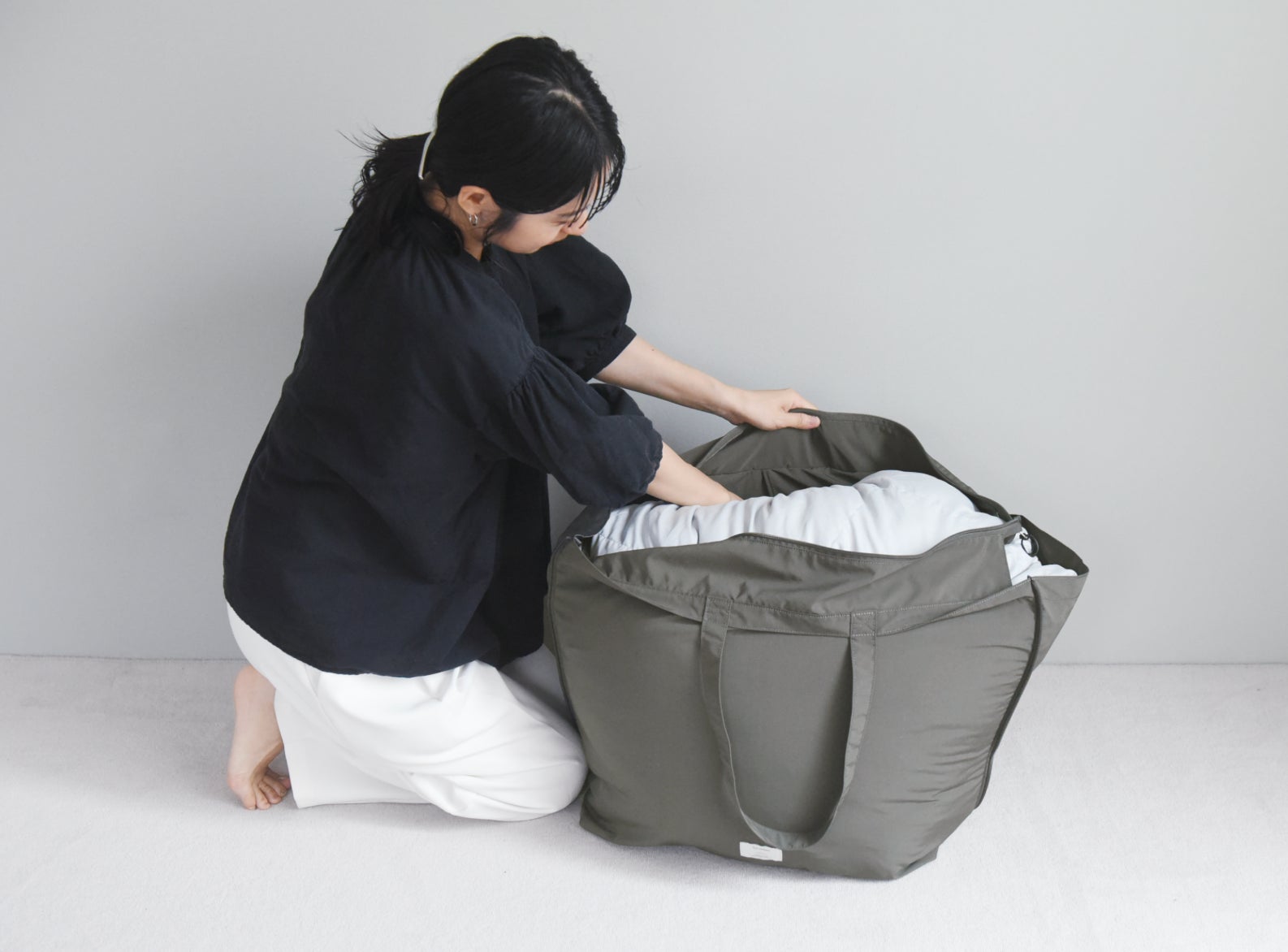 シングルサイズの羽毛布団も入る大容量バッグに変身します。