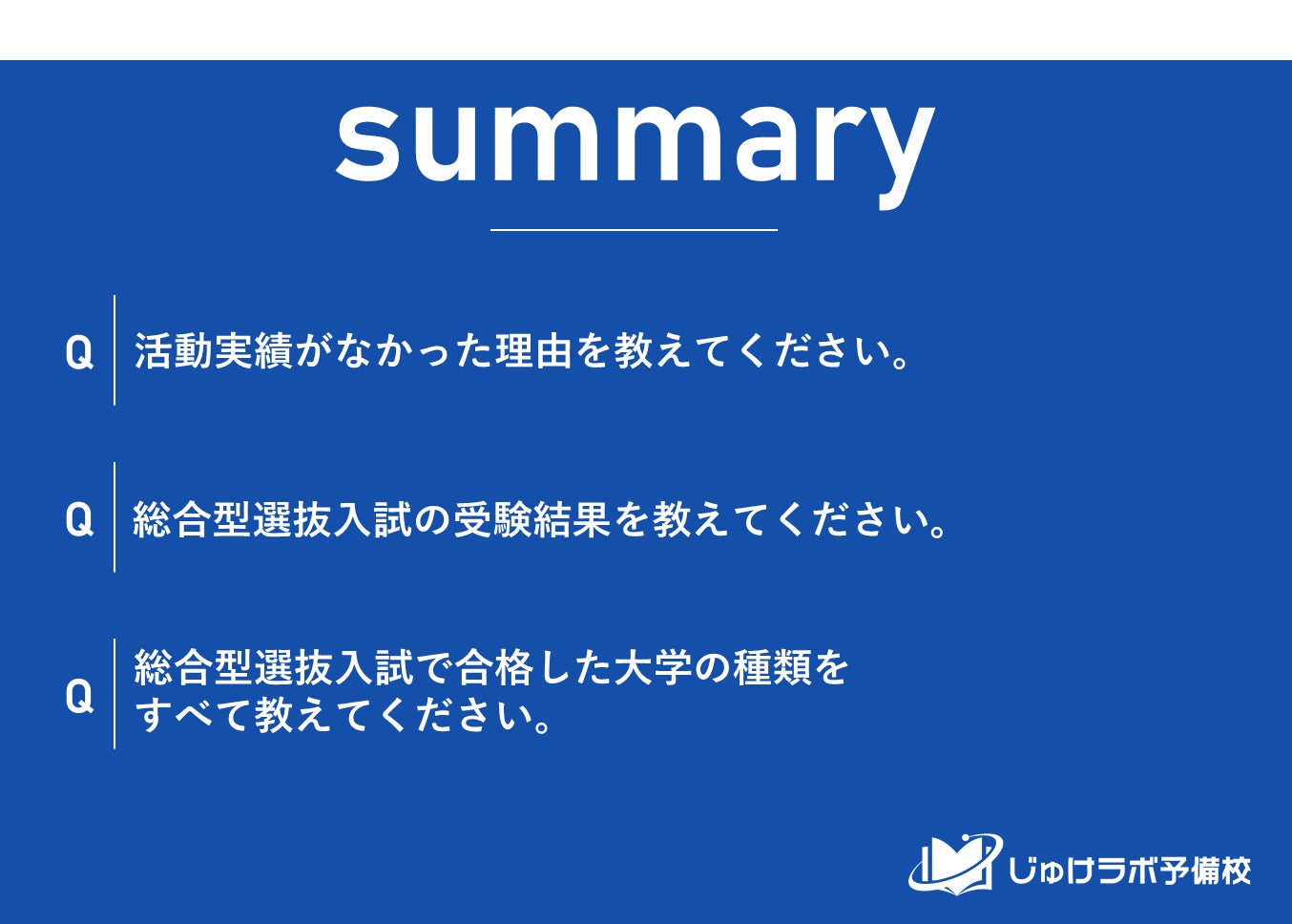 これらの結果は、総合型選抜が「活動実績」の有無だけで判断されるのではなく、深い自己分析に基づいた「ポテンシャル」の表現と、自分に合った大学を見極める「戦略」こそが合格の鍵を握ることを、強く物語っています。