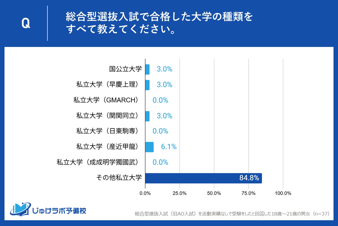 Q. 総合型選抜入試で合格した大学の種類をすべて教えてください。