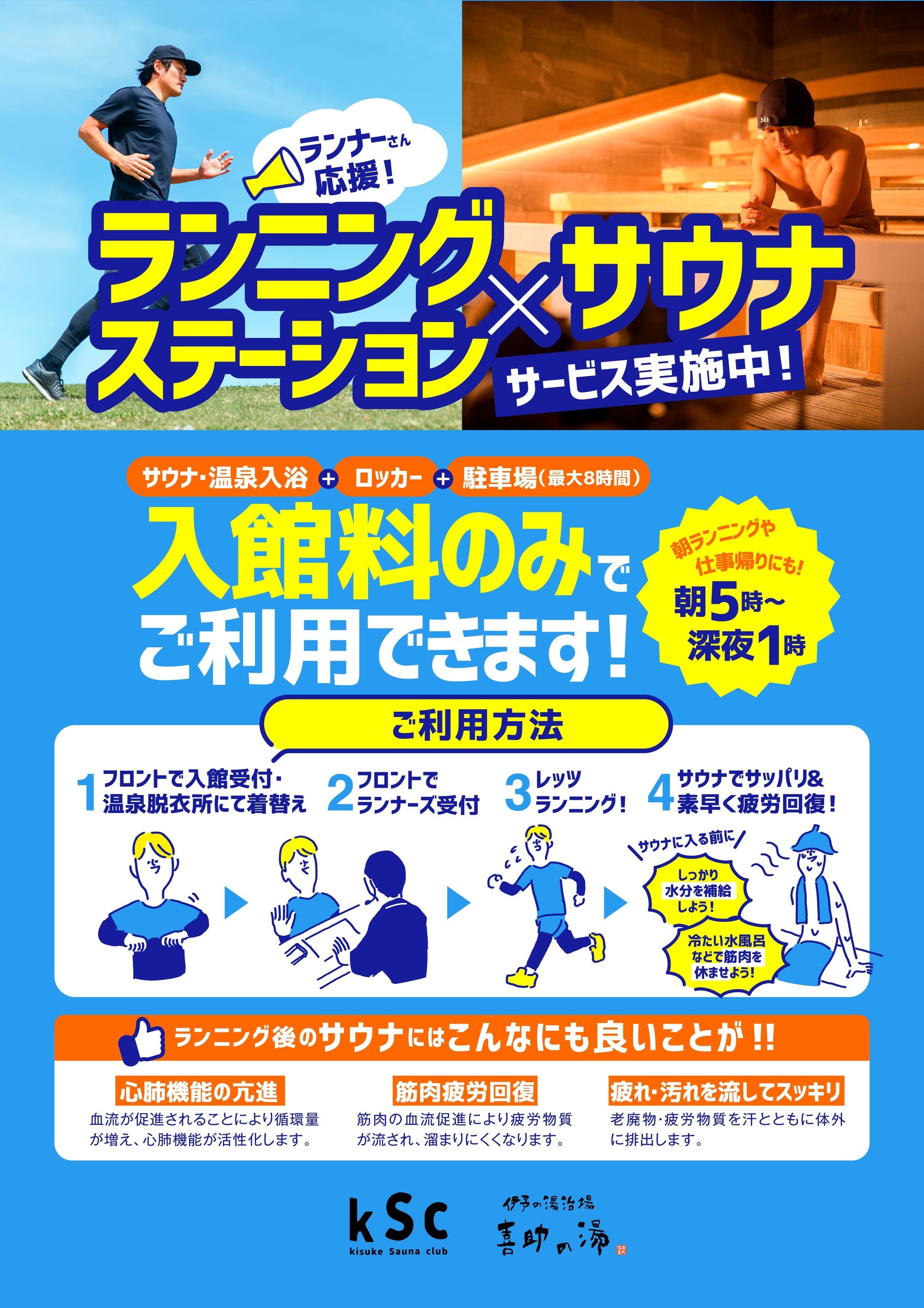 愛媛マラソンの練習にもオススメ!伊予の湯治場 喜助の湯が提供する【ランニングステーション×サウナ】サービス