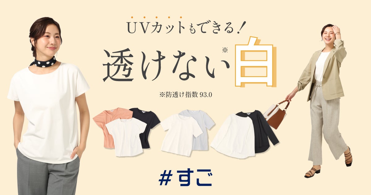 薄着になるこれからの季節、白Tシャツは清潔感があり、どんな洋服にも合わせやすい万能アイテムです。その一方で、お客様から「インナーや下着が透けていないか気になって仕事に集中できない」、「1枚で着るには抵抗がある」などインナーの“透け”問題に関するお悩みが多く寄せられています。これまでは、裏地を重ねることで透けにくくしていましたが、昨今の猛暑により軽くて涼しく、さらに透けないトップスの需要が高まっています。そこで今回、1枚で涼しく着られて、Tシャツほどラフすぎず、でもブラウスほどきれい目すぎない、そのうえ医療用の白衣と同じくらい“透けない”※ビジネス向け白Tシャツを企画しました。