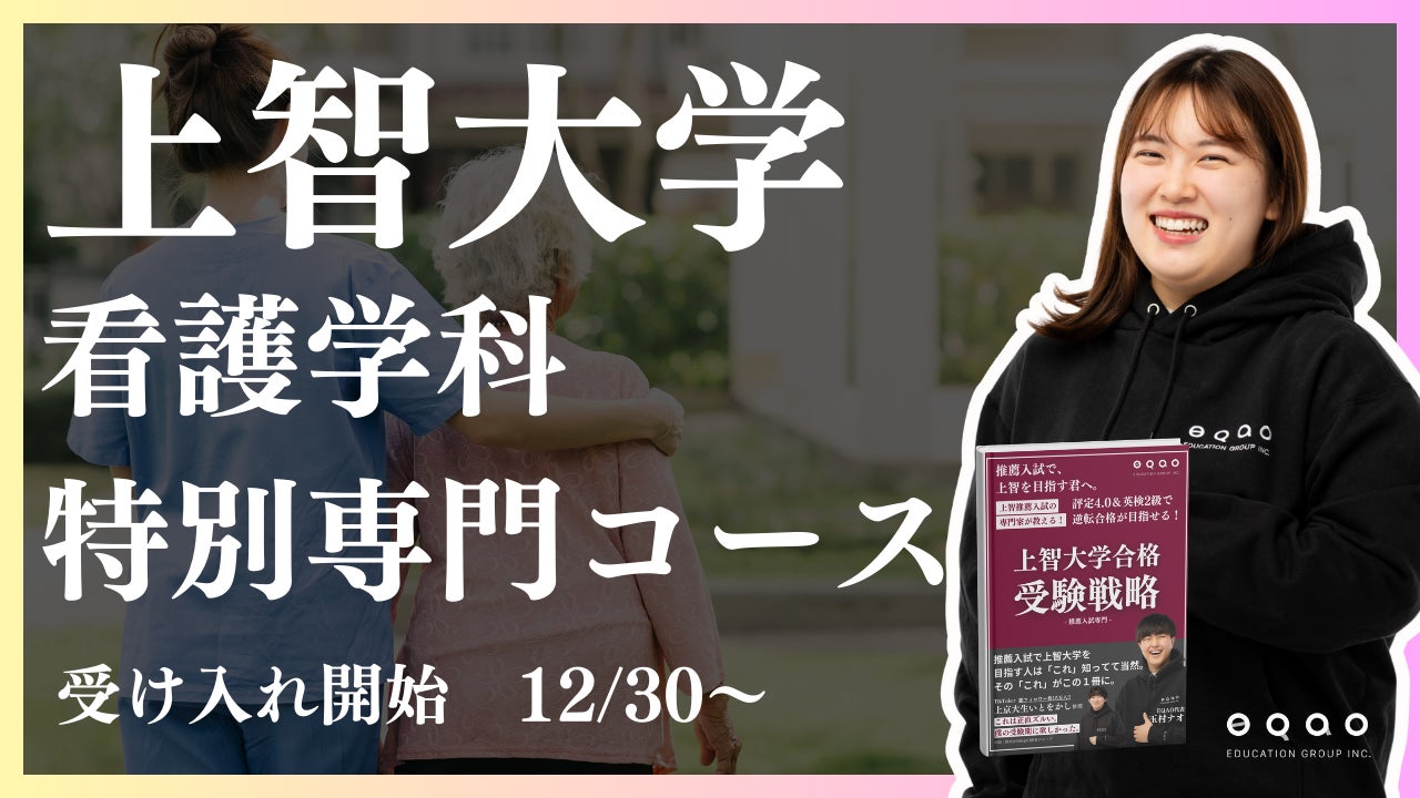 【公募推薦】上智大学看護学科志望の受験生必見!今勢いのある塾EQAOが上智大学看護学科特別専門コースの受け入れ開始!塾生の2人に1人が上智大生のEQAO一択!EQAOが受験生を全力サポートします!