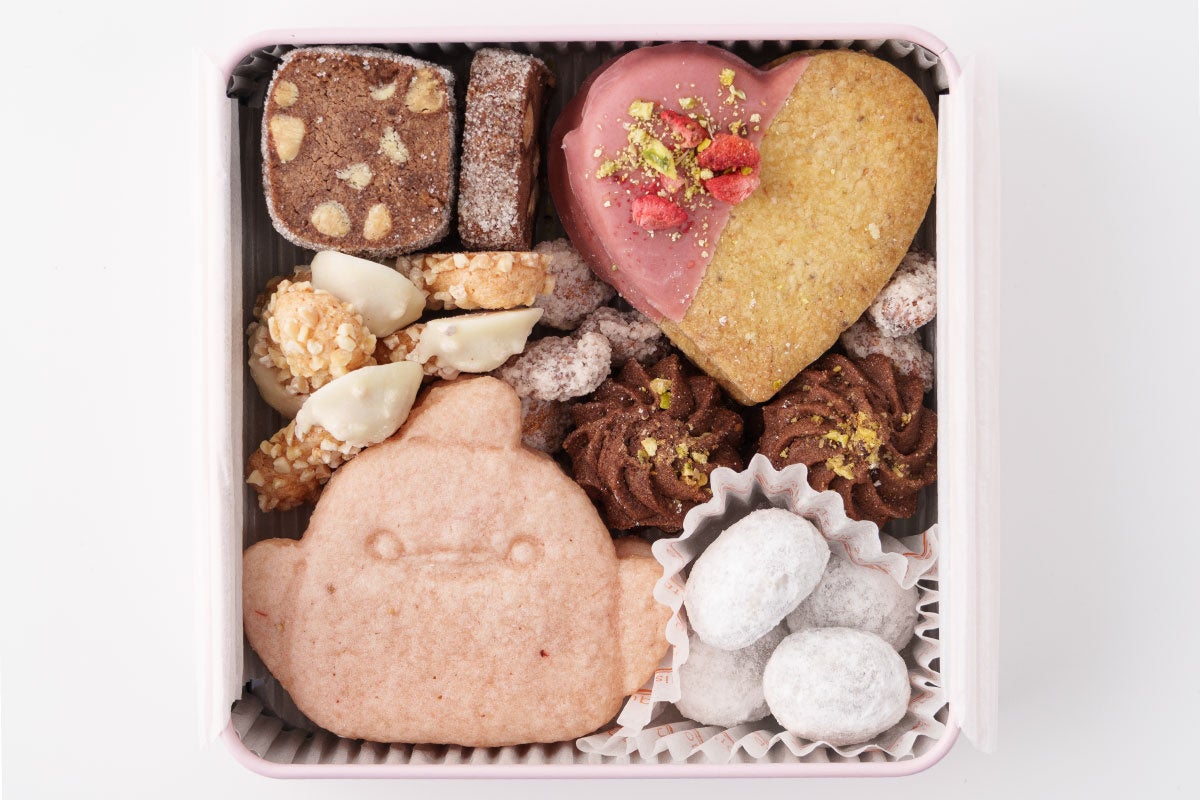 厳選した素材を使用し、焼き上げまでひとつひとつ丁寧に手作りした7種類の本格クッキーを贅沢に詰め合わせました。サクッと軽い食感から、ほろりとほどける口あたりまで、7種類それぞれの風味が楽しめます。ぴよりんの愛らしさと感謝の気持ちを込め、バレンタインをイメージした華やかなデザイン缶に詰め合わせました。中身を味わった後も小物入れとして使える、贈り物にもぴったりな一品です。
