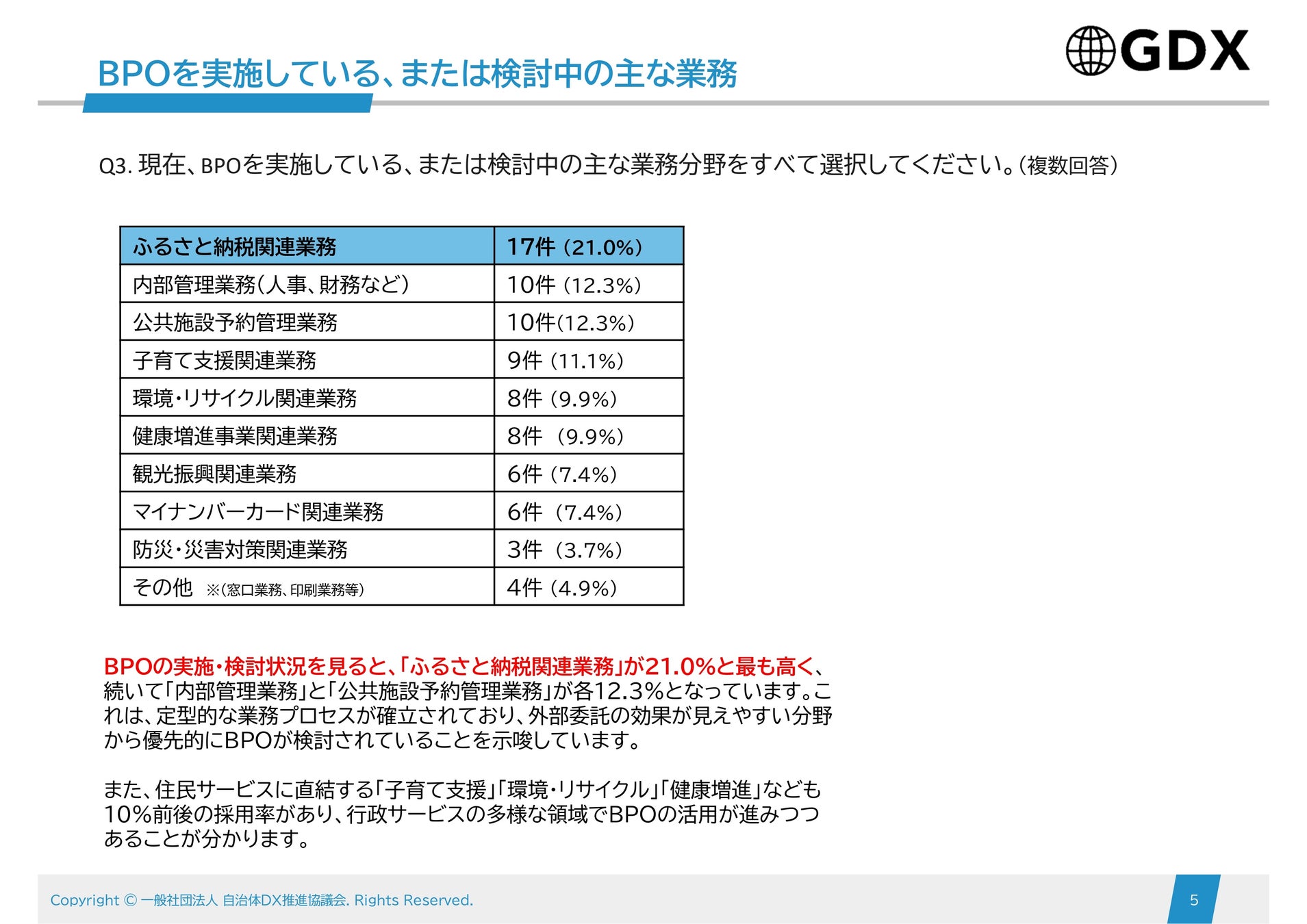 BPOを実施・検討中の主な業務では「ふるさと納税関連業務」が21.0%と最多