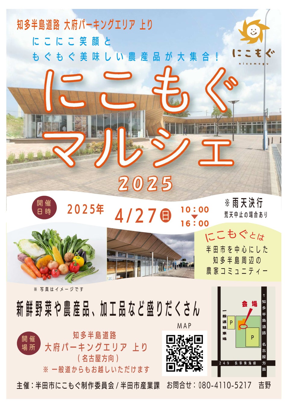 【愛知県半田市】4/27(日)、大府パーキングエリアで初開催!知多半島農業マルシェ『にこもぐ』