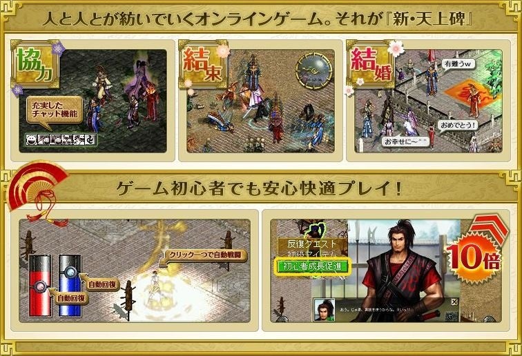 過酷な修行を乗り越え、強さの高みを目指す為、プレイヤーのそれぞれが協力し合って物語を紡いでいくオンラインゲーム。それが『新・天上碑』です。