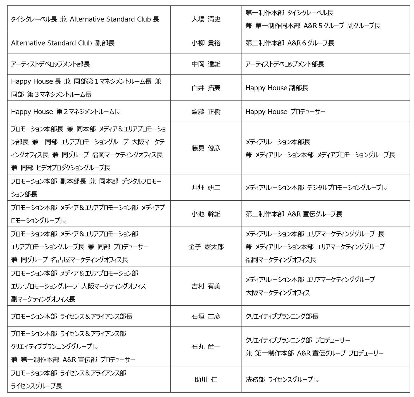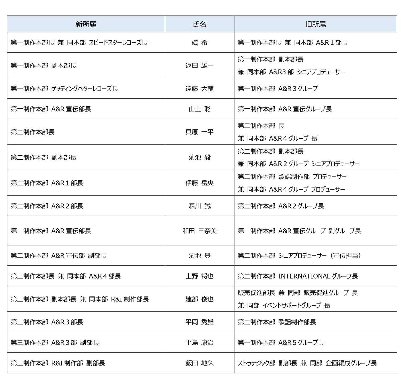 幅広いジャンルのアーティストに対応するため、部門名称を一部変更し、A&R1部(旧第二制作本部A&R4グループ)とA&R2部(旧第二制作本部 A&R2グループ)の2部制に再編し、A&R宣伝部を置く。