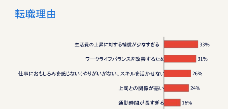 転職をめざす理由の1位はインフレ補償、2位はワークライフバランスの改善働きたいと思われる会社の魅力・価値を検証