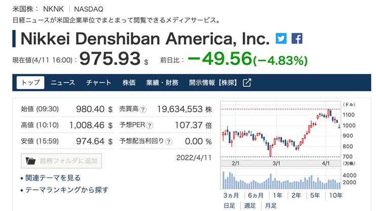 また、日経電子版が配信を開始した米国株の投資データページでも、株探コンテンツとの連携を行っています。株探上で提供している会社開示情報ページなどへのリンクが設置されるほか、米国株の投資テーマ情報の日経電子版への掲載が開始されました。