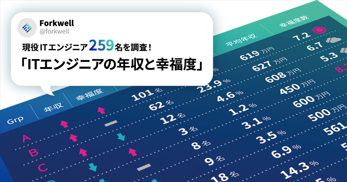 詳細はこちら:https://pr.forkwell.com/articles/it-engineers-annual-income-and-happiness-score/